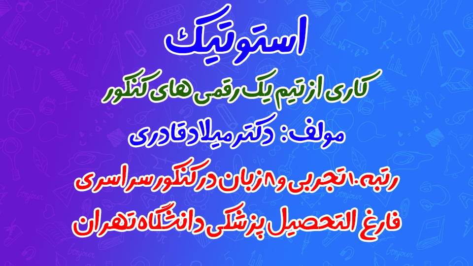 🔷شما عزیزان رو دعوت میکنم تا با استفادهی کامل از کتاب استوتیک، به نگرش رتبههای تک رقمی کنکور دست پیدا کنین.